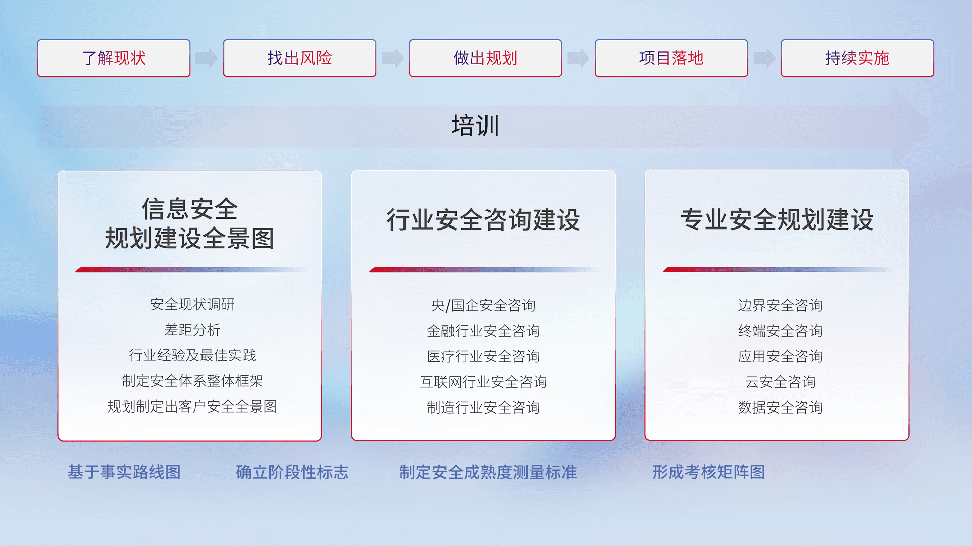 通过专业的法律咨询解读、、合规架构体现、、差异化解决方案、、、测试实施支持等服务,,为客户量身打造等保合规体系。。